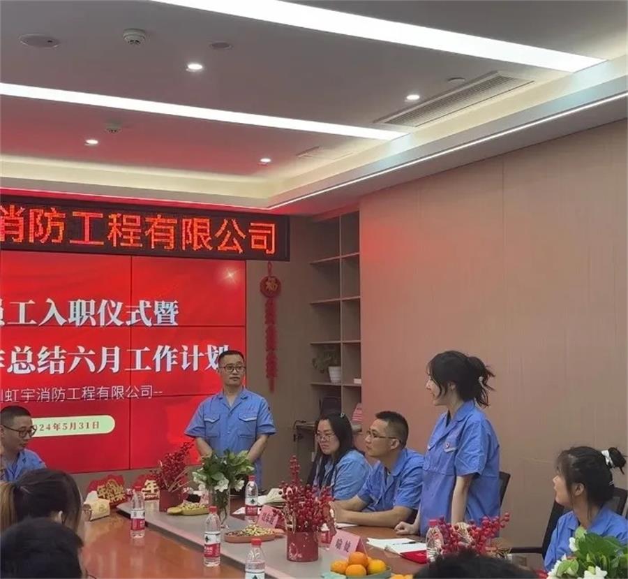 2024年5月31日上午虹宇消防成都和射洪項(xiàng)目人員齊聚成都事業(yè)部,開啟新員工入職儀式暨五月工作總結(jié)六月工作計(jì)劃會(huì)!